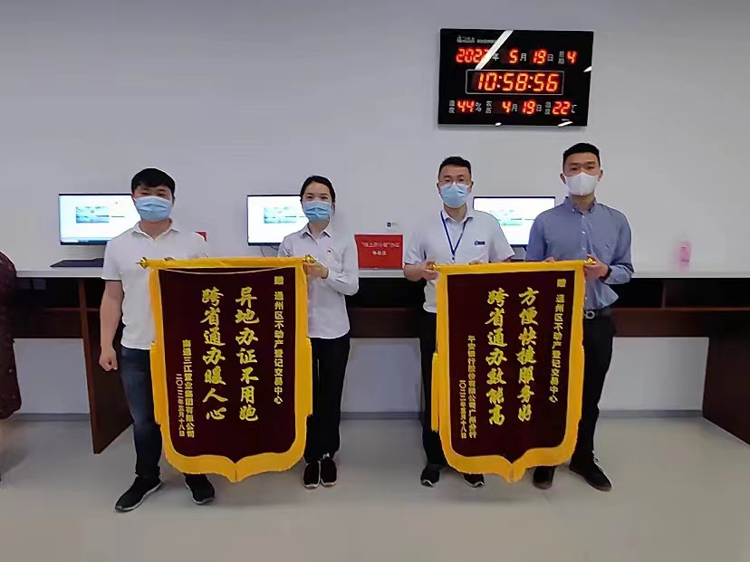 前來送錦旗的南通三江置業集團有限公司的張經理表示,現在疫情防控形勢嚴峻,原以為涉及外省銀行的業務辦理肯定會遇到許多困難,他們撥打12345熱線咨詢時,工作人員告知可以通過“線上蘇小登·南通e證通”平臺,進行抵押權登記一站式不見面線上辦理。抱著試試看的心態,身處廣州的平安銀行工作人員進行了線上申請并上傳材料,經不動產登記交易中心審核通過后,實時推送電子證照,順利辦好了登記事項。張經理感慨道:“通州區不動產登記交易中心創新服務機制,精簡業務流程,壓縮辦結時限,提升服務效率,切實解決了企業難題,減輕了企業負擔,優化了營商環境。”